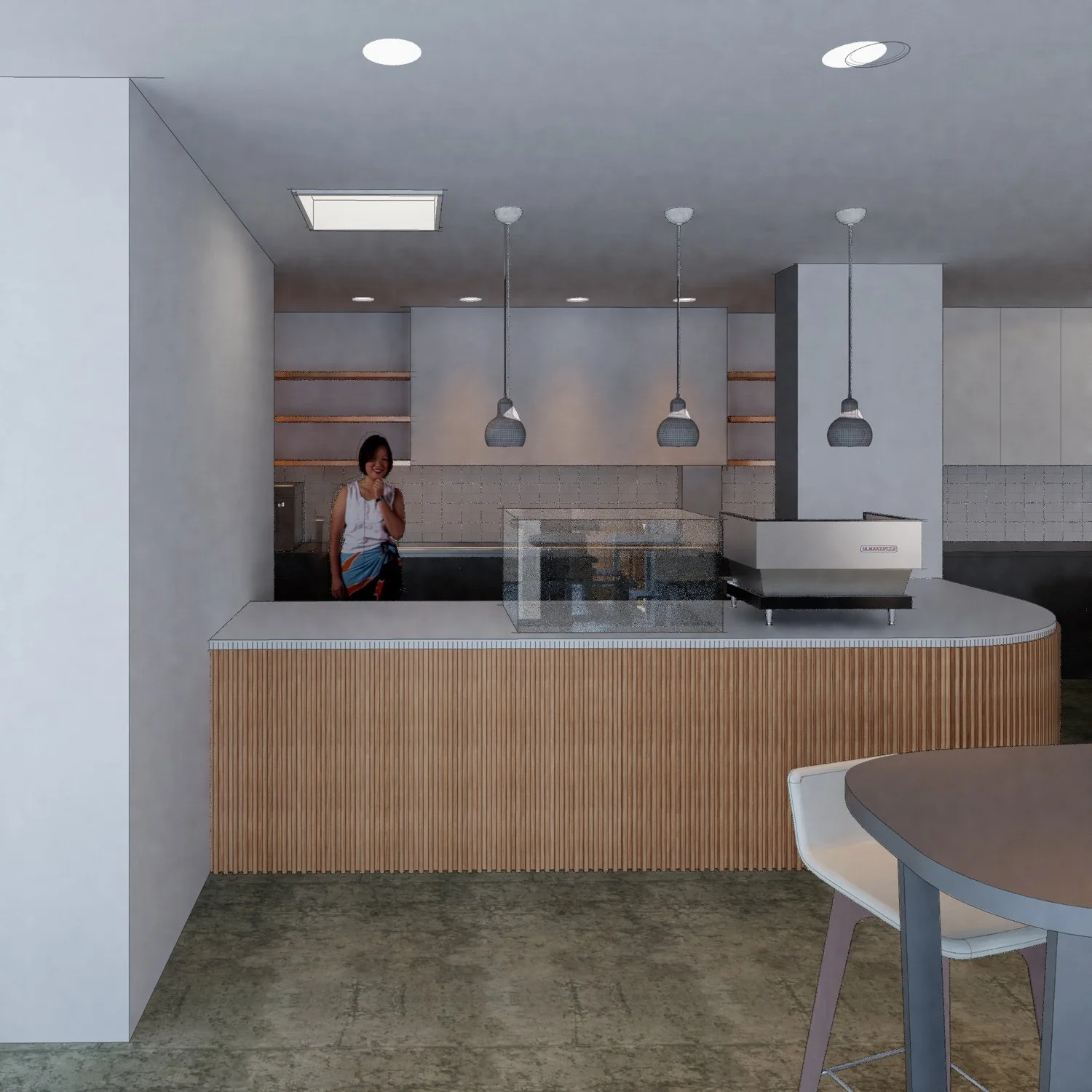 Located in the heart of Manette, Bremerton, this tenant improvement transforms an existing one-story building into Vim & Vigor—a contemporary, light-filled coffee shop crafted with care. Owned by a passionate young couple, the café reflects their vision for a welcoming space with natural materials, playful forms, and warm daylight. A central skylight brings sunlight deep into the interior, while custom slatted wood details and organic curves give the space texture and softness. The couple, both highly skilled and hands-on, completed much of the build themselves, adding a personal layer to every surface. Designed to feel modern yet grounded, the shop now serves as a cozy community hub for coffee, connection, and calm.